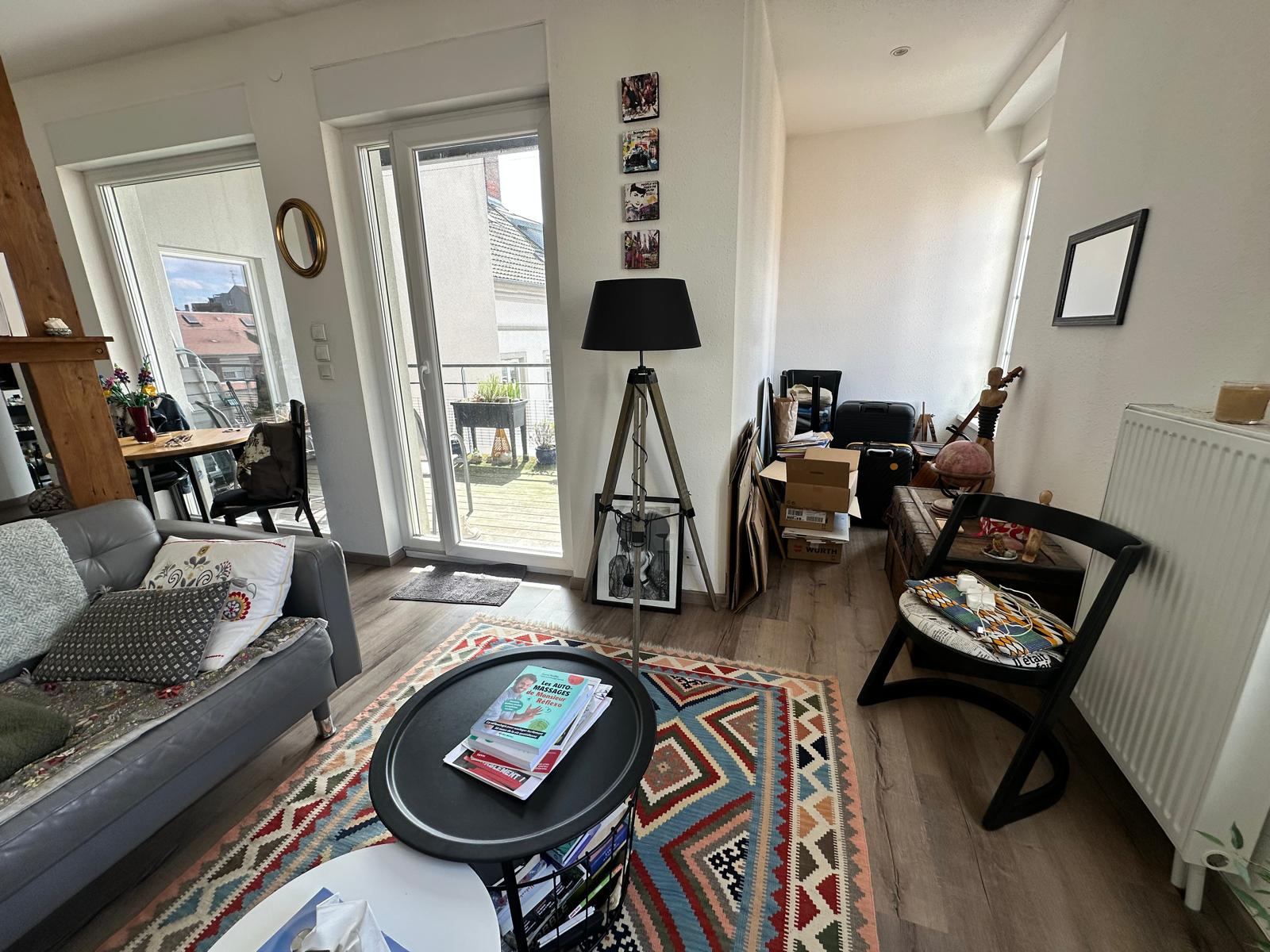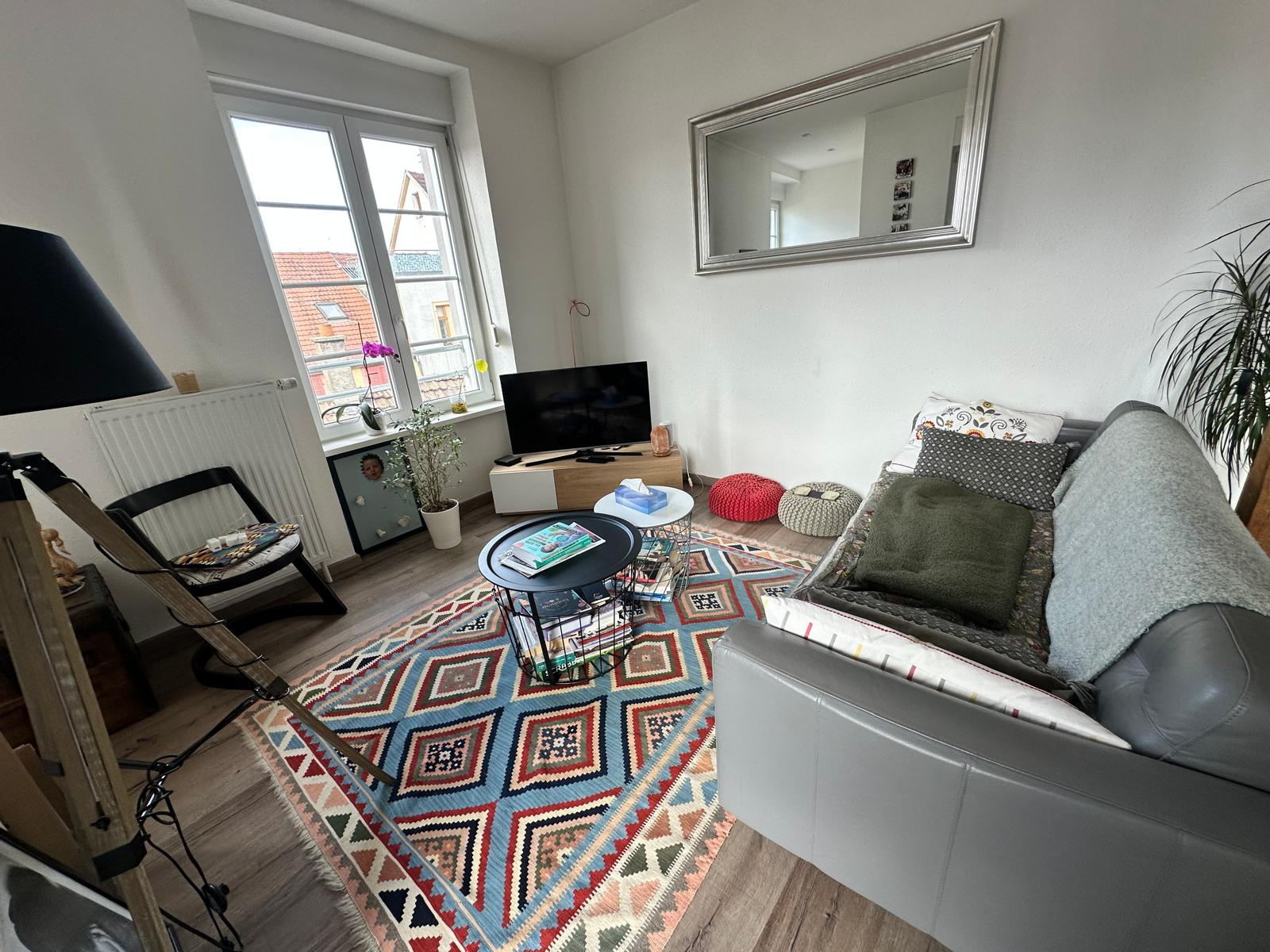 En plein centre de Mulhouse, Rue du Sauvage, joli 3 pièces de 71m², comprenant : une entrée, une cuisine équipée avec sortie sur une terrasse couverte de 8m², un salon/salle à manger avec sortie sur la même terrasse, 2 chambres, une salle d'eau équipée (douche, meuble-vasque), wc séparé avec lave-mains; au sous-sol : une cave, un local à vélos. Chauffage collectif au gaz avec compteur individuel, beau parquet dans tout l'appartement, fenêtres double vitrage PVC. LOYER : 720€ + 60€ de charges = 780€/mois. Dépôt de garantie : 720€. Les frais d'agence pour le locataire sont de 568€ + 213€ frais d'état des lieux = 781€. UNE VISITE S'IMPOSE !