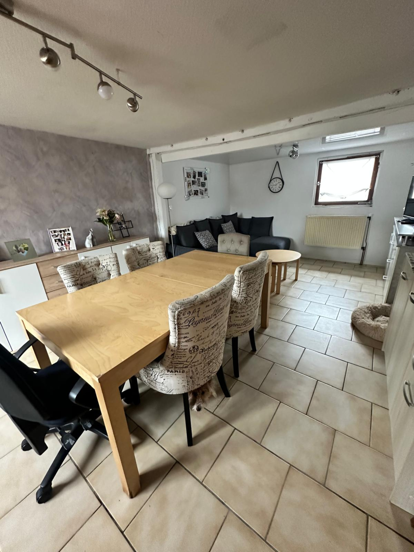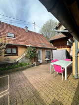 OPPORTUNITE A SAISIR : Au coeur d'un village très prisé, proche gare, commerces de proximité, autoroute et frontière Suisse, maison de village mitoyenne style alsacien d'une surface d?environ 90m2 au sol, 4/5 pièces sur un terrain de 1.20 are, comprenant : une entrée, une cuisine, un salon/salle à manger, 2 chambres, une salle d'eau équipée (douche, meuble-vasque, emplacement machine à laver, wc, fenêtre), un cellier, à l'étage : une chambre mansardée, possible d'aménager une 2ème chambre ou une salle d'eau; une cave sous la moitié de la maison; à l'extérieur : un abri/terrasse couvert(e), une petite grange aménageable en cuisine d'été, une petite cour. Chauffage et eau chaude au fuel, fenêtres en bois, carrelage au rez-de-chaussée. Prévoir travaux de rénovation (pompe à chaleur, fenêtres, escalier...). PRIX INTERESSANT POUR UNE JEUNE FAMILLE OU POUR UN INVESTISSEUR !