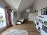 À seulement 15 minutes de l'aéroport Bâle-Mulhouse et 5 minutes du centre de Mulhouse, dans une commune recherchée bénéficiant d'une école maternelle, primaire et périscolaire, cette magnifique villa d'exception d'environ 280m2, 8 pièces, s'implante sur un terrain clos et arboré de 12 ares, en bordure de champs. Elle offre un cadre de vie idyllique avec une vue imprenable et à couper le souffle sur Bâle et jusqu'aux Alpes suisses. Prestations haut de gamme et volumes généreux caractérisent cette propriété rare, idéale pour une famille en quête de confort, de modernité et de sérénité. Rez-de-chaussée : Entrée principale desservant un dressing pratique pour les rangements quotidiens. Vestibule supplémentaire entre les garages et la cuisine, idéal comme entrée de service, vestiaire et accès extérieur fonctionnel. Magnifique espace de vie ouvert de plus de 100m² réunissant cuisine équipée haut de gamme « Signature », salle à manger et salon, baigné de lumière grâce à de superbes grandes baies vitrées dont une centrale à galandage offrant une vue dominante et spectaculaire sur Bâle et les Alpes suisses. Poêle à bois neuf (2023) implanté dans la pièce principale pour des soirées chaleureuses et conviviales. Accès direct sur une superbe terrasse exposée plein sud, wc indépendant. Étage : Grand palier aménagé en bibliothèque, 5 chambres spacieuses, dont une suite parentale avec dressing et salle de bains privative. Espace salon supplémentaire (en passage) idéalement aménagé en salle de jeux et desservant les deux grandes chambres d'enfants, 2 salles de bains supplémentaires et wc indépendant. Sous-sol complet et sain (accessible par 2 escaliers pour une praticité optimale) : Cave (180 m2). Belle cave à vin. Buanderie. Immense pièce polyvalente de plus de 90m² avec parquet (idéal salle de sport, home-cinéma, salle de billard ou bureau). Nombreux espaces de rangement supplémentaires. Garage attenant pour 3 voitures (2 portes sectionnelles motorisées). Extérieur d'exception, à l'abri des regards : vaste terrasse avec avancée de toit pour un coin ombragé. Plusieurs places de parking devant la maison. Second portail pour accès direct au jardin. Arrosage automatique, bacs à fleurs design en Corten. Confort et équipements premium (très récents) : Pompe à chaleur air-eau Daikin neuve (décembre 2025) avec chauffage au sol au rez-de-chaussée et radiateurs à l'étage. Climatisation gainable réversible (bouches intégrées dans faux plafonds.) Poêle à bois pour appoint. Beaux parquets, nombreux rangements. Système domotique complet, alarme, caméras de surveillance. Portes d'entrées (tous accès extérieurs) sécurisées avec lecture d'empreinte digitale, fenêtres double vitrage (aluminium au RDC, bois à l'étage), brise-soleil orientables électriques, façade refaite. Cette villa allie élégance, technologie et art de vivre en pleine nature. UN BIEN RARE, EN PARFAIT ETAT, PRÊT A ACCUEILLIR SES NOUVEAUX PROPRIETAIRES POUR UN QUOTIDIEN D'EXCETION !