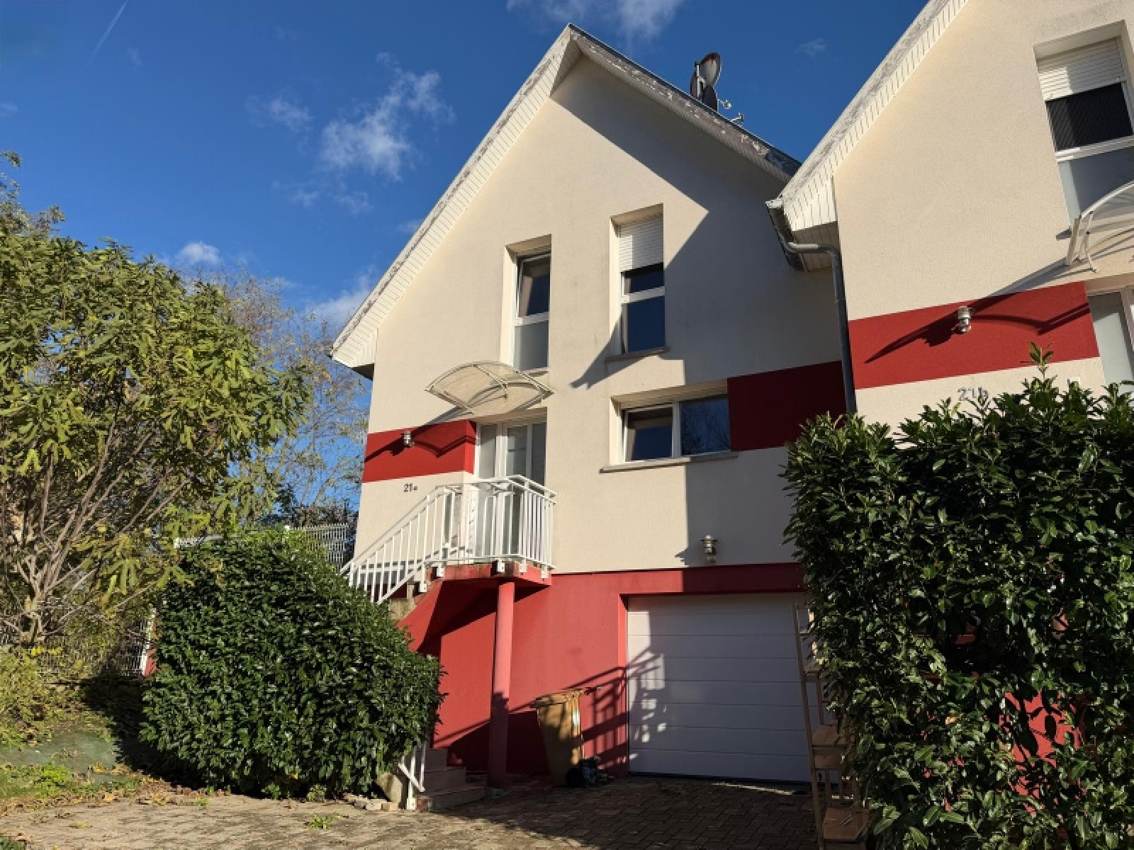 Vous recherchez un bien proche de la frontière Suisse ? Emplacement idéal, en lisière de forêt et à 2 minutes du centre-ville, nous vous proposons une maison jumelée année 2009 d'environ 100m², 4/5 pièces, 2.75 ares. Elle se compose de la manière suivante : une entrée avec placard, un wc visite avec lave-mains, une cuisine équipée ouverte sur un lumineux salon/salle à manger de 43m² traversant et exposé ouest/est, sortie sur une terrasse et un jardin à l'abri des regards, une 2ème terrasse exposée ouest pour les soirées d'été se trouve sur le côté; à l'étage : un dégagement, 3 chambres de bonne taille mansardées, une salle de bains équipée (baignoire, lavabo, wc suspendu, radiateur sèche-serviettes, fenêtre); au sous-sol : un garage pour 2 voitures en enfilade et une buanderie avec un adoucisseur viennent compléter ce bien; à l'extérieur : 2 places de parking dans la cour. Chauffage électrique, fenêtres double vitrage PVC, carrelage dans toute la maison, sauf parquet dans les chambres, grenier isolé par le plancher. Possible pour une habitation principale ou pour un investissement locatif (loyer espéré : 1'250€/mois). BON RAPPORT QUALITE/PRIX. A SAISIR !